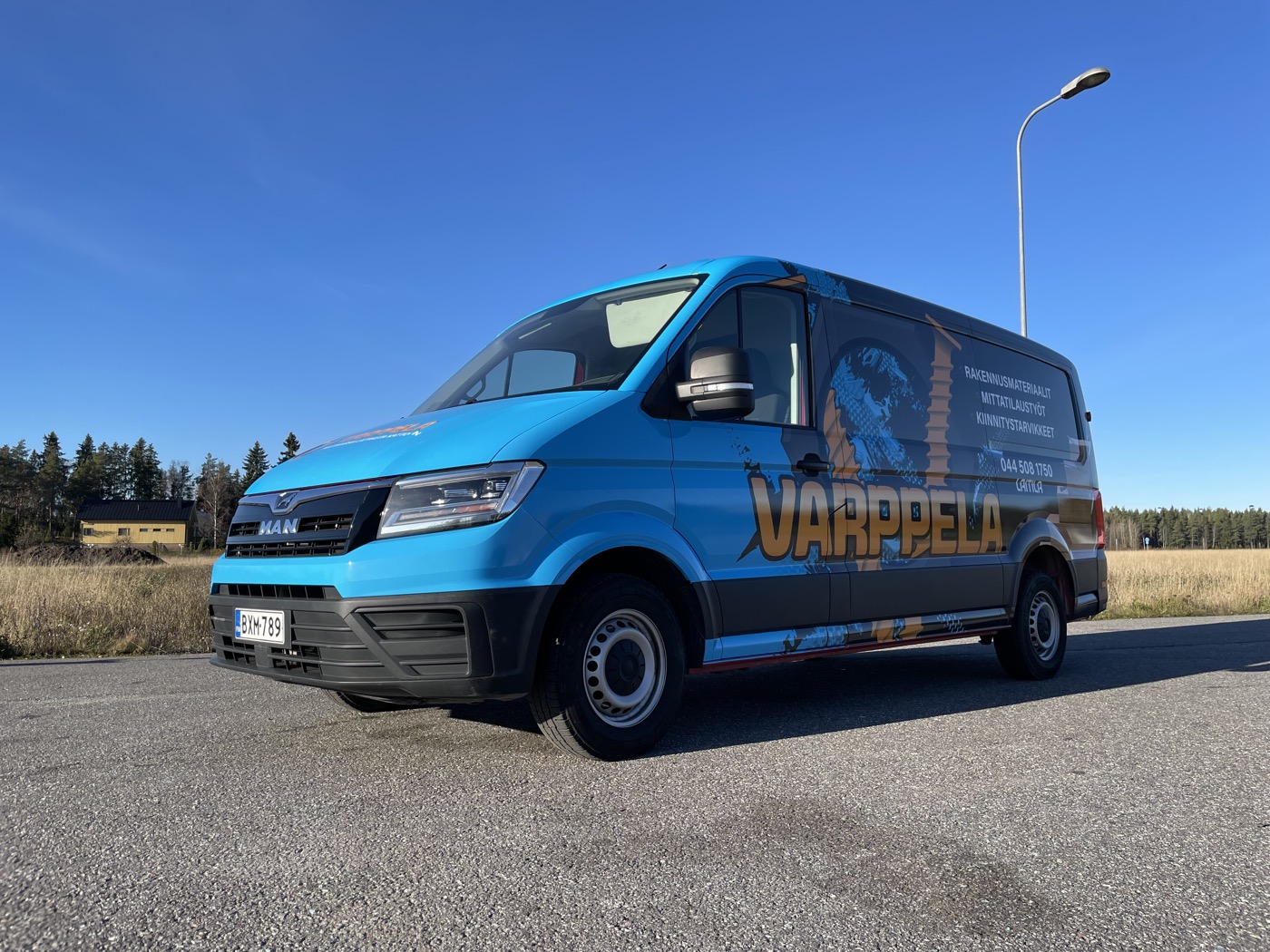 Rautakauppa Varppela Oy:lle suunniteltiin ja toteutettiin heidän toimialaansa sopiva mainosteippaus. Alkujaan punainen pakettiauto yliteipattiin näyttävästi uuteen ulkoasuun.
